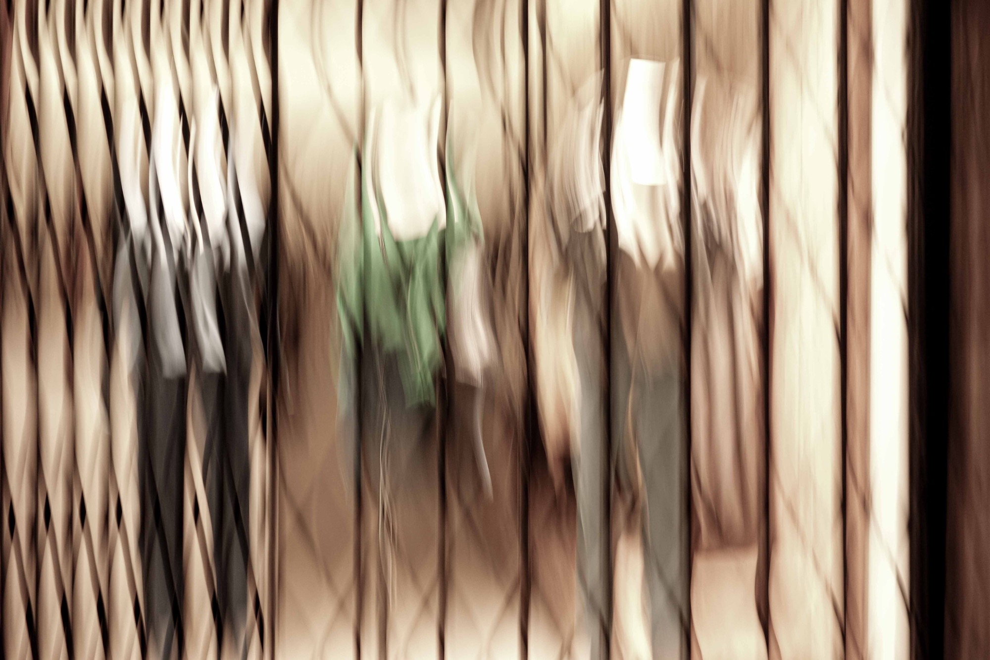 „CAGED FASHION“ zeigt Mode als stilles Schauspiel hinter Grenzen - Formen, Körper und Konturen lösen sich in vertikale Strukturen auf. Schaufensterpuppen, Stoffe und Licht verschmelzen zu einem fließenden Geflecht aus warmen Beige- und Erdtönen. Das Gitter wird zum zentralen Motiv: Es trennt, ordnet und verfremdet zugleich. Was ursprünglich Präsentation war, verwandelt sich in ein abstraktes Spiel aus Rhythmus, Bewegung und Zurückhaltung.